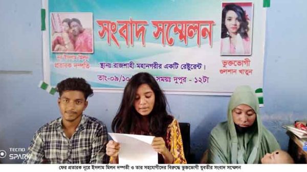 ভূক্তভোগী গুলশান খাতুন তার লিখিত বক্তব্যে বলেন, অনুমানিক ১০মাস আগে রাজশাহী মহানগরীর বোয়ালিয়া থানাধিন মিয়া পাড়া এলাকার প্রতারক মিলন দম্পত্তী ফাহমিদা আফরিন মৌ (৩৫), স্বামী: নূরে ইসলাম মিলন ও নূরে ইসলাম মিলন (৪০), তার পিতার নাম মৃত মোস্তাক হোসেন ডাবলু। তার মেয়ে কানিজ ফাতেমা রোজা (২১) আমার খুব ভালো বান্ধবী ছিলো। সেই সূত্রে তার মা ও তার বাবা নূরে ইসলাম মিলনকে আমি আমার মা-বাবার চোখে দেখতাম। তাদের পরিবারের সাথে আমার গভীর সম্পর্ক এবং যাতায়াত ছিলো।