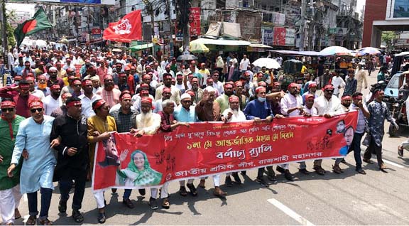 দিবসটি উপলক্ষে রোববার বেলা ১১টার দিকে প্রথমে মহানগীর আওয়ামী লীগ কার্যালয় থেকে শোভাযাত্রা বের করে শ্রমিকলীগ। শোভাযাত্রাটি বিভিন্ন সড়ক প্রদক্ষিণ করে পরে দলীয় কার্যালয়ে গিয়ে শেষ হয়। এতে নেতৃত্ব দেন মহানগর আওয়ামী লীগের ভারপ্রাপ্ত সভাপতি বীর মুক্তিযোদ্ধা মোহাম্মদ আলী কামাল ও সাধারণ সম্পাদক ডাবলু সরকার। এছাড়া রাজশাহী মহানগর শ্রমিক লীগের ভারপ্রাপ্ত সভাপতি ওয়ালী খান ও সাধারণ সম্পাদক শরীফ আলী মুনমুনসহ অন্যান্য নেতারা উপস্থিত ছিলেন।